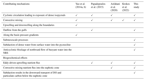 Table 2Summary of the major conclusions from the related studies relative to the formation of the RSOW in the NRS.
