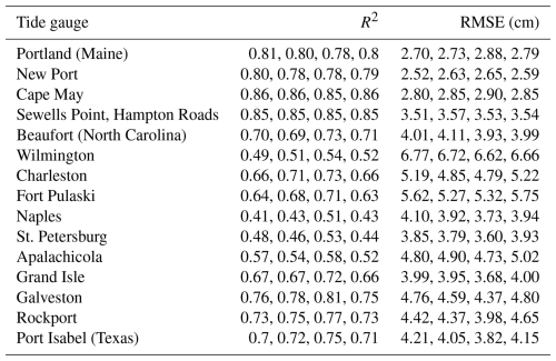 NCAR computational resources were used for data and model analysis; NCAR is a major facility sponsored by the NSF under Cooperative Agreement 1852977. We thank the Permanent Service for Mean Sea Level and the developers of the momlevel Python package (https://momlevel.readthedocs.io/en/v0.0.7/, last access: 1 March 2025). Maps were generated using Python 3.8 (http://www.python.org, last access: 1 March 2025), matplotlib 3.7.3 (https://matplotlib.org/, last access: 1 March 2025), and cartopy 0.21.1 (https://scitools.org.uk/cartopy, last access: 1 March 2025).