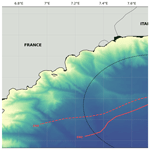 Located at 43.42° N, 7.87° E, DYFAMED has served as a key reference site for air–sea exchange, upper ocean dynamics, and biogeochemical cycling since the early 1990s. The site is equipped with continuous meteorological and oceanographic monitoring, including high-quality wind speed and direction measurements from the Côte d'Azur meteorological buoy operated by Météo-France, located at the DYFAMED site. These data are reported at hourly resolution following WMO (World Meteorological Organization) standards and include wind parameters, air temperature, pressure, humidity, and sea state.