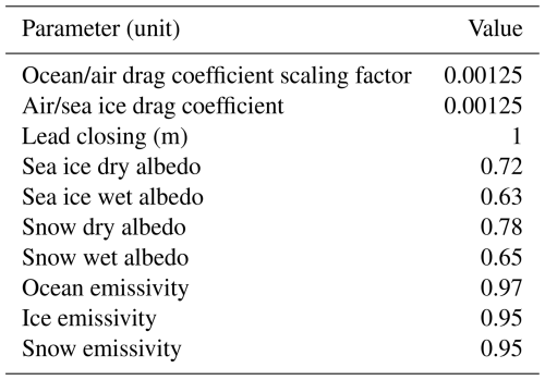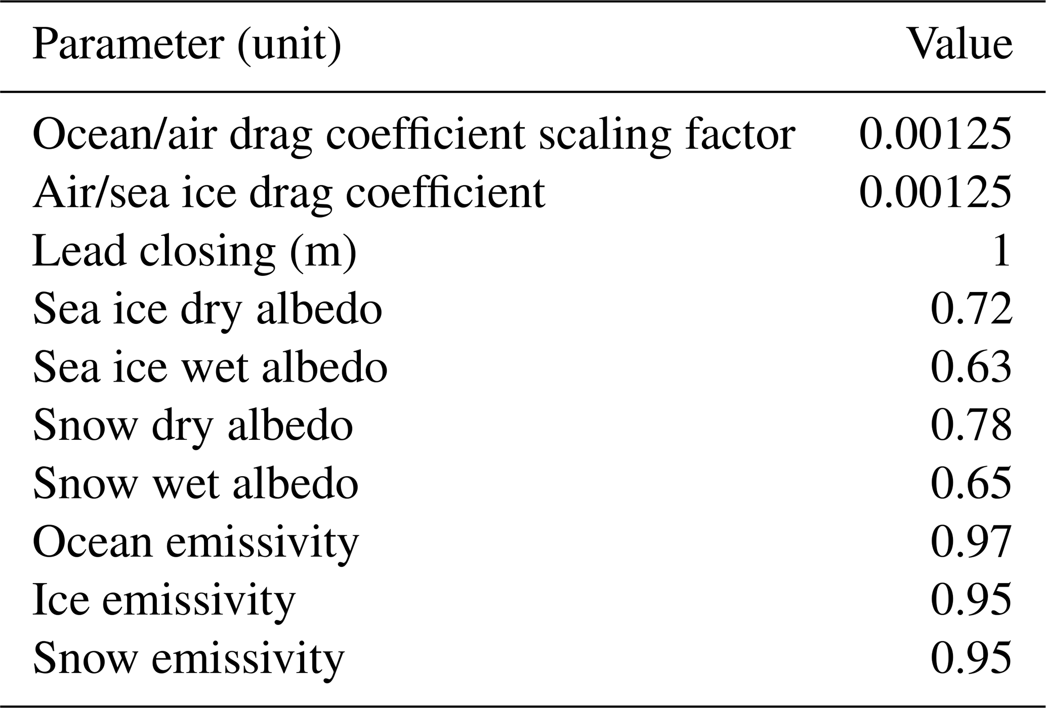 Table 1MITgcm ocean and sea ice model parameters and values used in this study. Only parameters that are different from Nakayama et al. (2018) are shown.