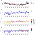 The improvement obtained through DA was also evaluated using the Pearson's correlation coefficient, r=i=1Nobsw[yi-avg(y)][yim-avg(ym)]std(y)std(ym), and the global mean difference (BIAS). The change in global BIAS (ΔBIAS) and in mean correlation (Δr) between the different model runs are reported in Table 1, further confirming the overall positive impact of data assimilation on model performance.