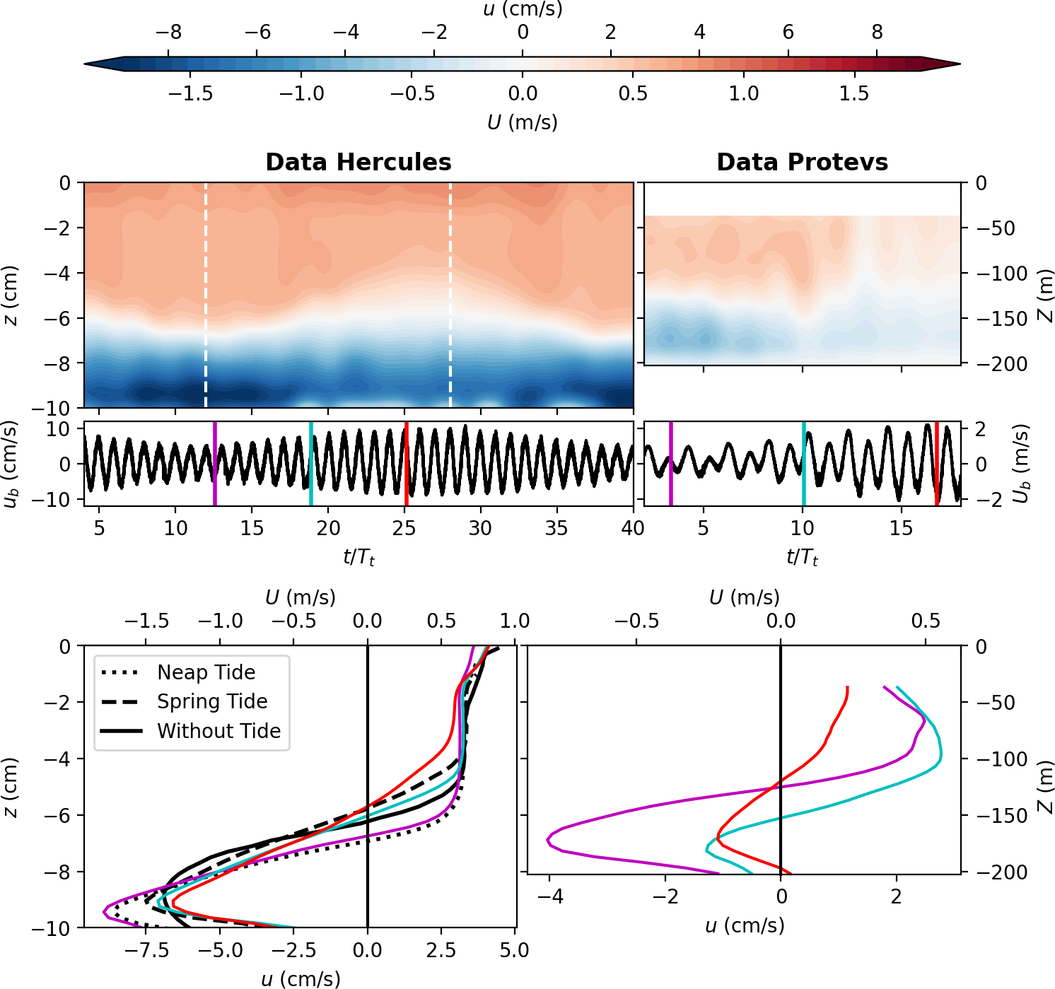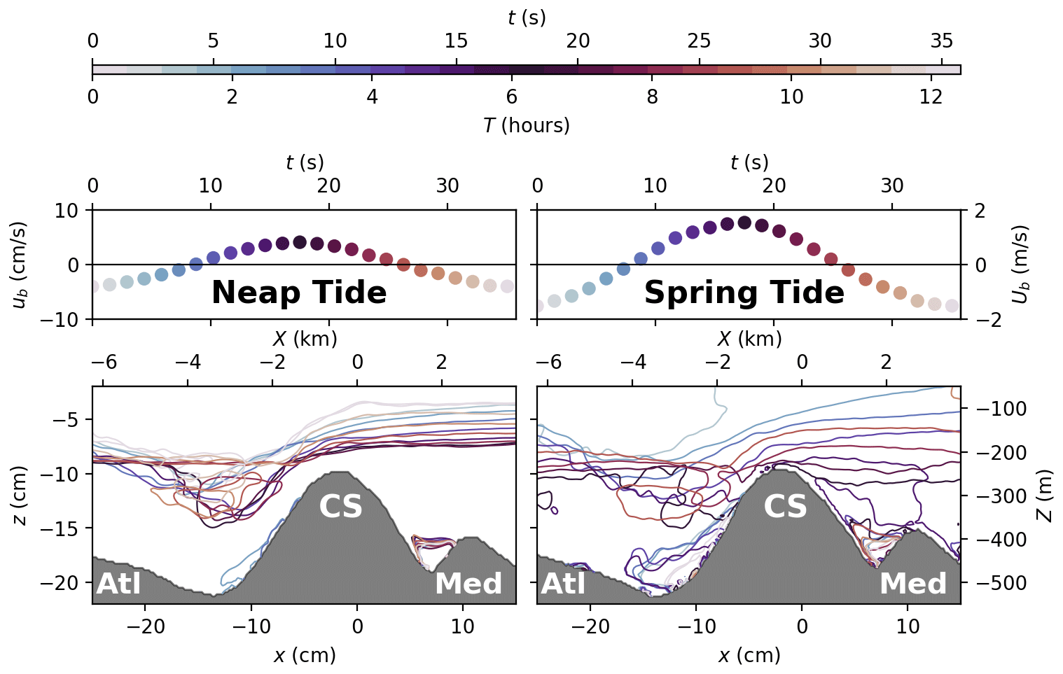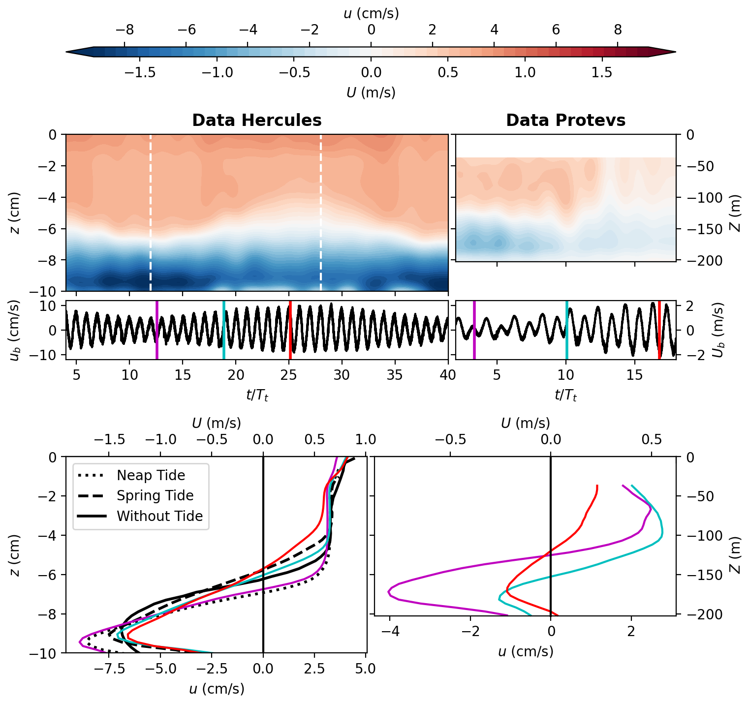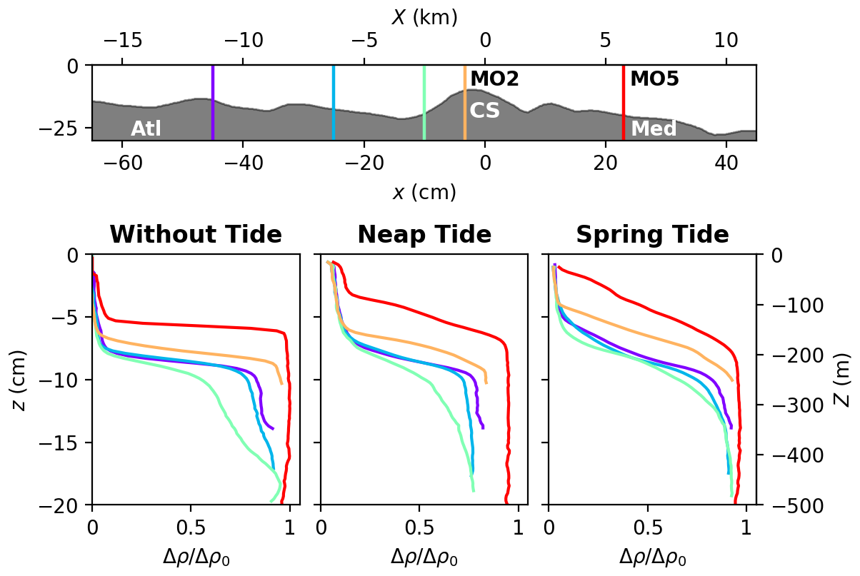 In the following Sect. 4.1, we first present time averaged velocity and density fields (, ), whereas the inflow and outflow dynamics during both spring tide and neap tide (, ) are analyzed in Sect. 4.2.