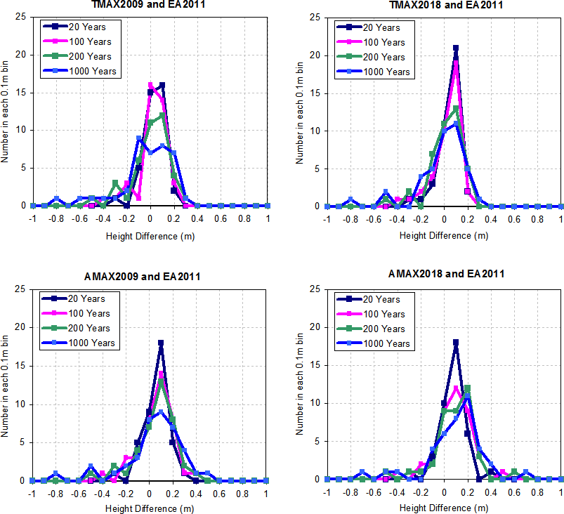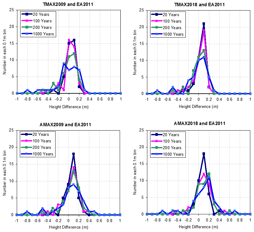 Table 3Standard Deviation in Mean and Mean Difference between AMAX and EA2011 and between TMAX and EA2011 (m).