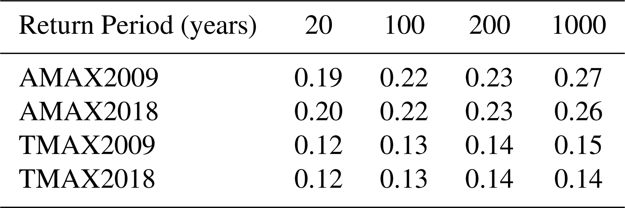 Table 2Mean of Standard Deviation (m) for AMAX and TMAX based upon variance in predicted level, σp of the LSQ fit.