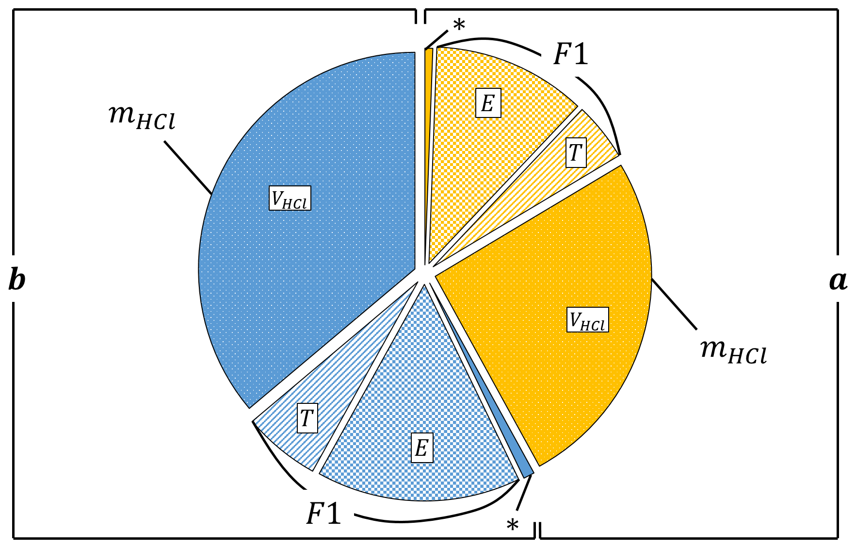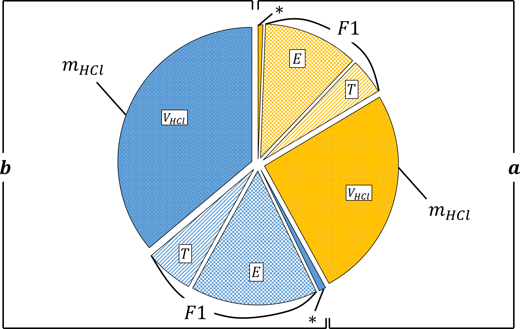 where mHCl is the mass of acid added (g), νHCl the acid amount content (mol kg−1), and minit the mass of sample analysed (g).